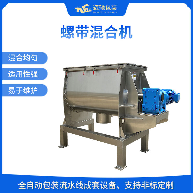臥式螺帶混合機(jī)由U形筒體、螺帶攪拌葉片和傳動部件組成;螺帶狀葉片一般做成雙層,工作時外層螺帶將物料從兩側(cè)向中央?yún)R集,內(nèi)層螺帶將物料從中央向兩側(cè)輸送,形成對流混合。攪拌部件還可以制作成槳葉式或增加飛刀,適應(yīng)不同的物料。筒蓋可做成拱形或全開式,拱形可以承壓,全開式方便清洗設(shè)備內(nèi)部。本機(jī)的優(yōu)點(diǎn)是適用范圍廣、混合均勻度高、混合時間短、裝載系數(shù)大。